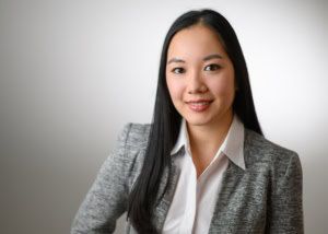 Das Bild zeigt eine junge asiatische Frau in einem grauen Blazer und weißem Hemd die freundlich in die Kamera lächelt Es ist ein professionelles Portrait das sich gut für Businessfotografie Personal Branding Unternehmenspräsentationen und Karrierefotos eignet Der Hintergrund ist neutral um den Fokus auf die Person zu legen