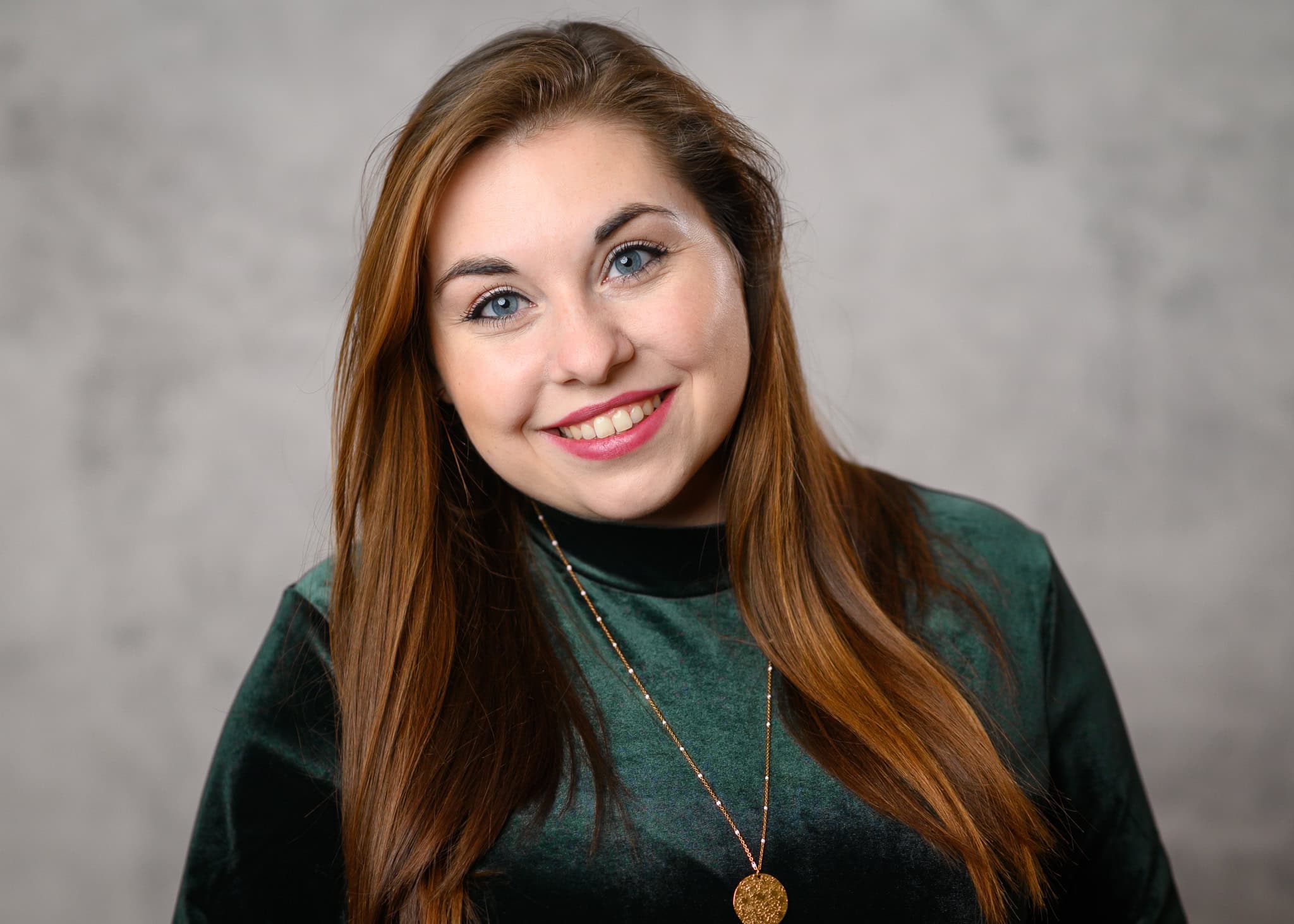 Das Bild zeigt eine freundliche professionell wirkende Frau mit roten Haaren die direkt in die Kamera lächelt Es eignet sich ideal für Business Profile Webseiten und Marketingmaterialien um Vertrauen und Kompetenz zu vermitteln