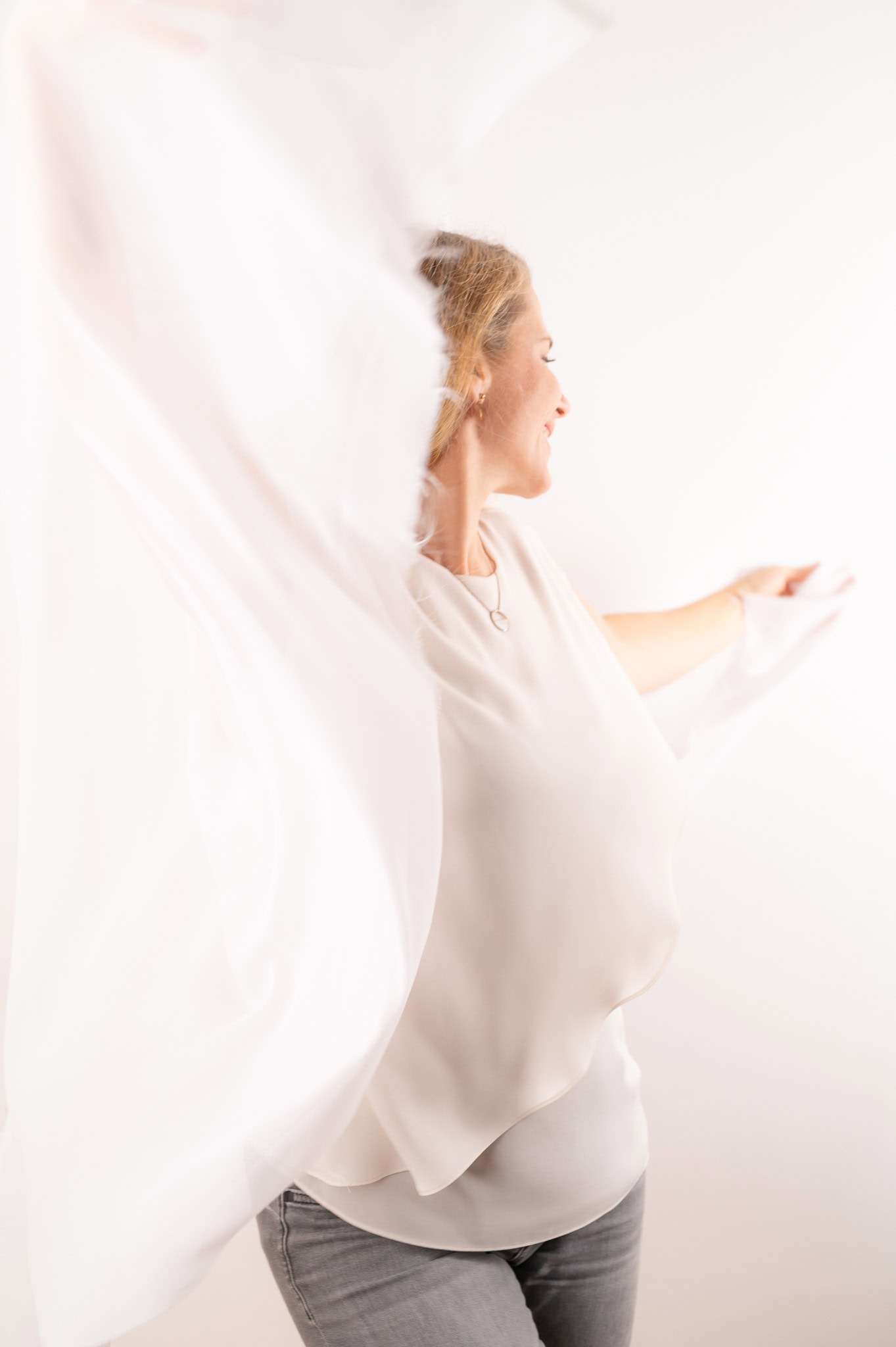 Diese Businessfotografie zeigt eine Frau in entspannter Pose vor hellem Hintergrund perfekt für Unternehmens und Personal Branding Die Aufnahme betont Professionalität und Selbstvertrauen geeignet für Karriere und Businessfotos