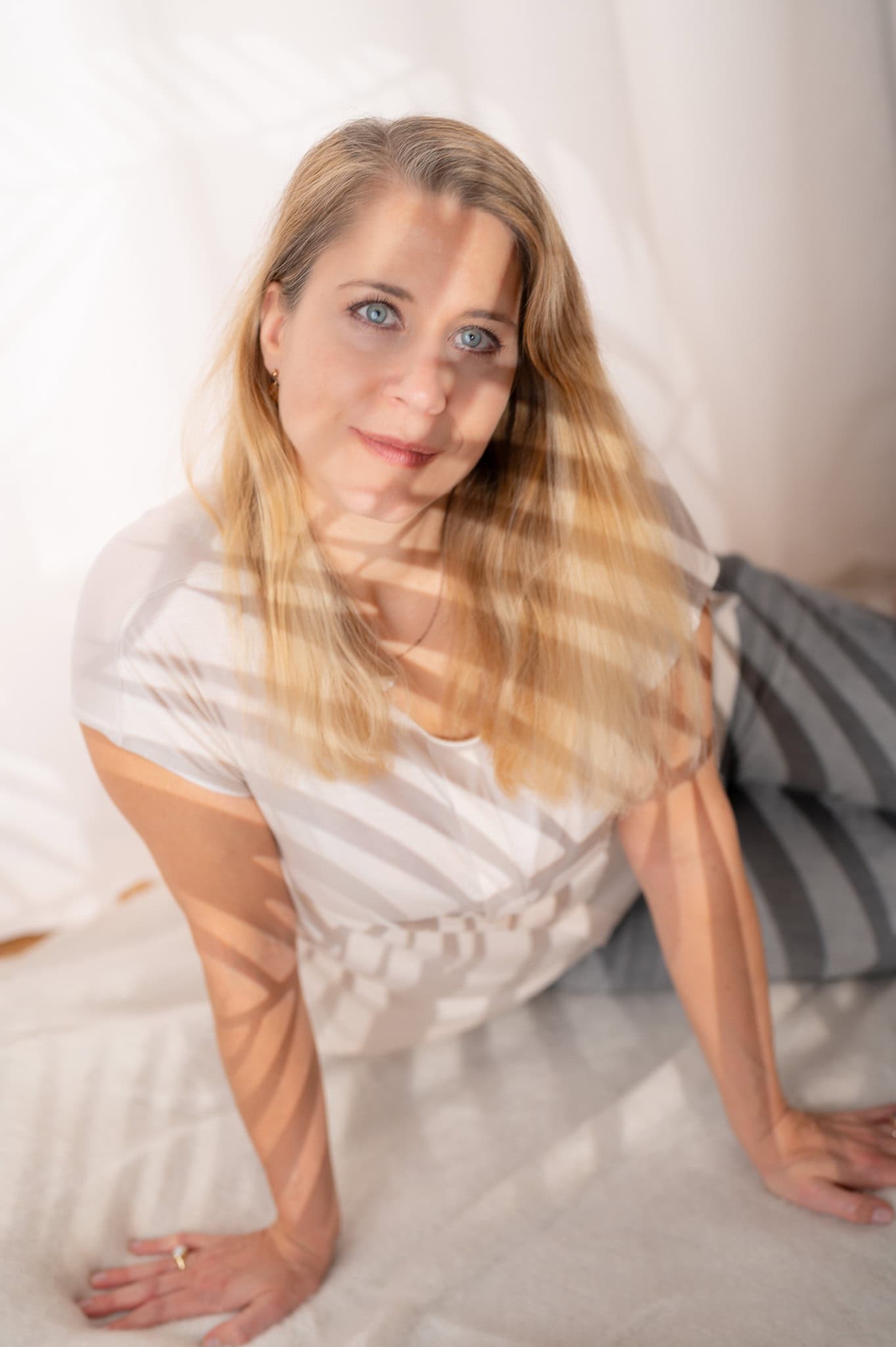 Das Bild zeigt eine junge Frau in einem hellen Raum die auf einem Sofa sitzt und direkt in die Kamera blickt Es ist ein hochwertiges Businessfoto das sich ideal für Unternehmenspräsentationen Karriereprofile und Personal Branding eignet Die natürliche Beleuchtung und die entspannte Pose unterstreichen Professionalität und Authentizität Perfekt für Businessfotografie um einen positiven ersten Eindruck zu hinterlassen