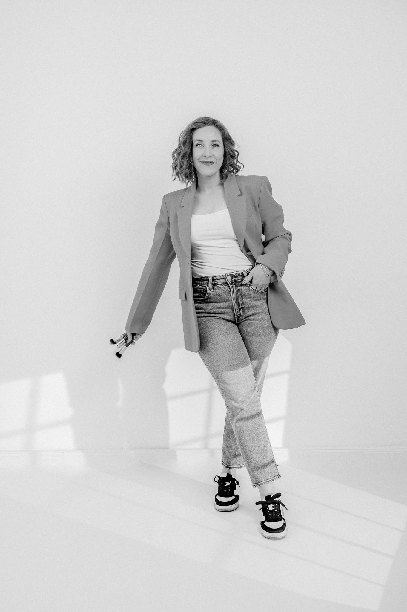 Professionelles Businessportrait einer Frau in casual Businesskleidung geeignet für Unternehmens und Karrierefotos mit natürlichem Ausdruck