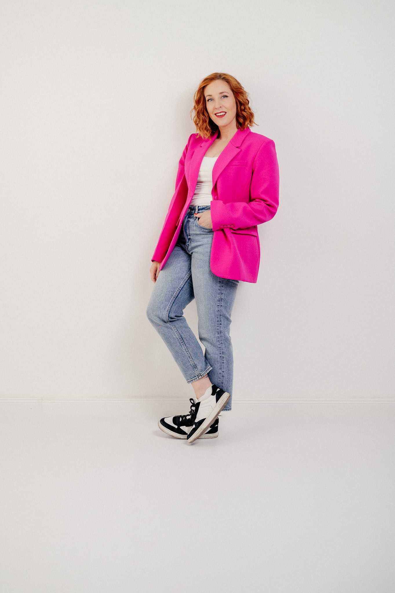 Moderne Businessfotografie mit Frau in pinkem Blazer