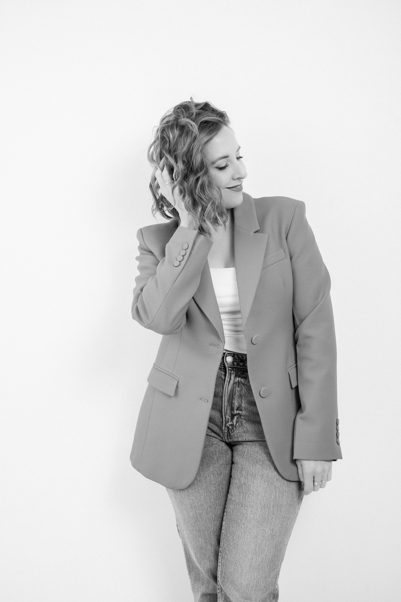 Ein professionelles Businessfoto einer Frau in einem grauen Anzug geeignet für Personal Branding und Karriereprofile Das Bild vermittelt Kompetenz Stil und Selbstsicherheit ideal für Unternehmensfotografie und Business Branding