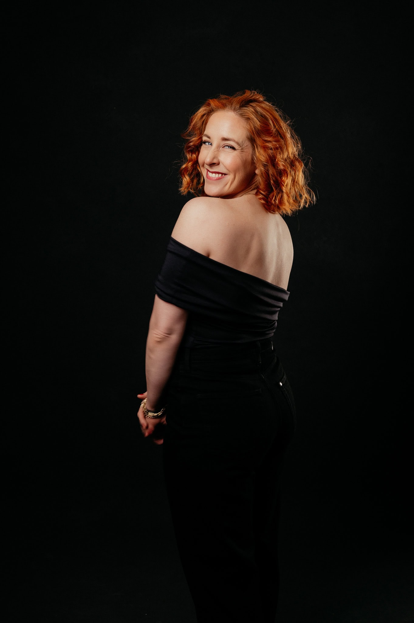 Moderne Businessfotografie mit Frau vor schwarzem Hintergrund
