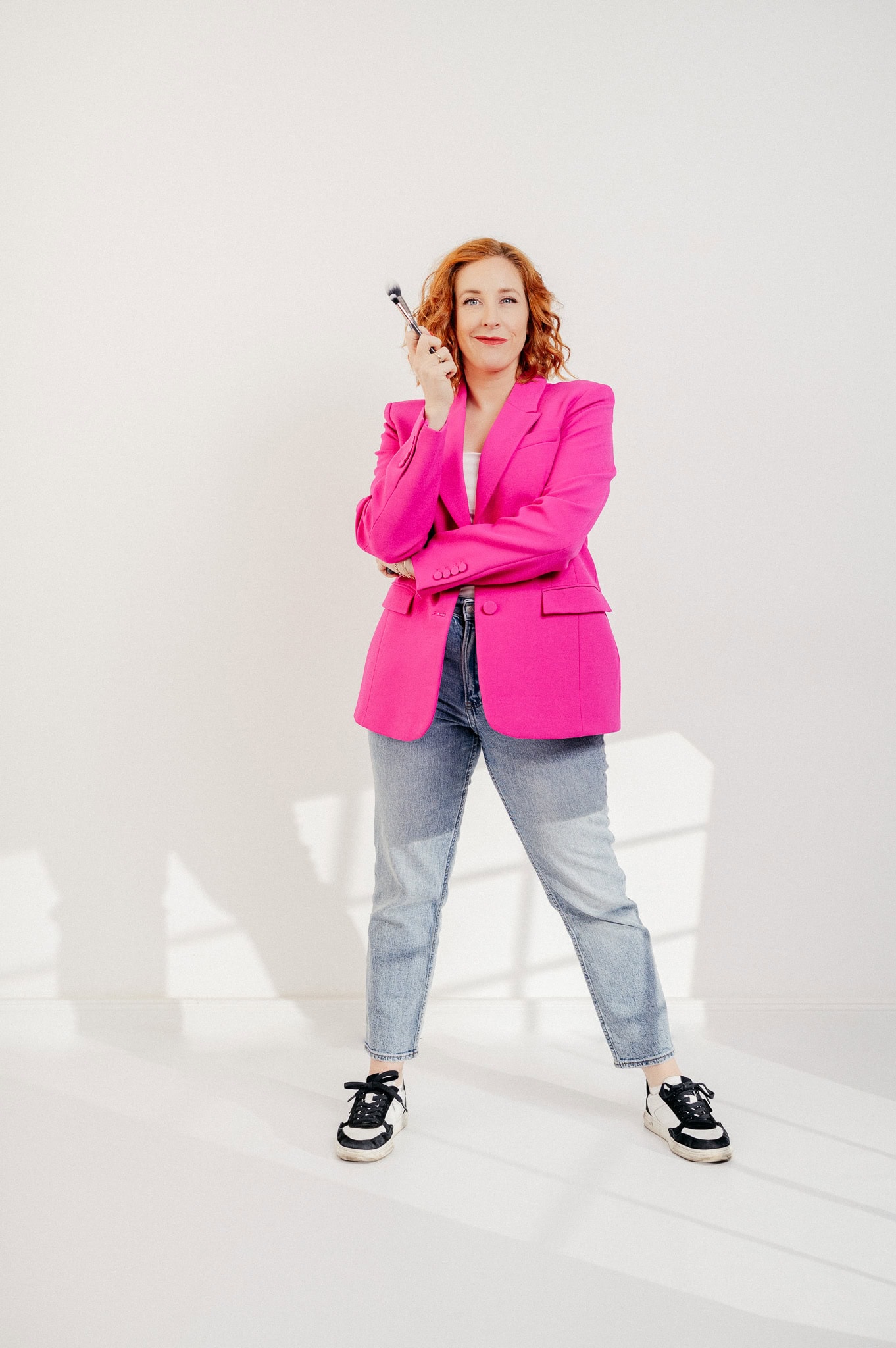 Moderne Businessfotografie mit Frau in pinkem Blazer