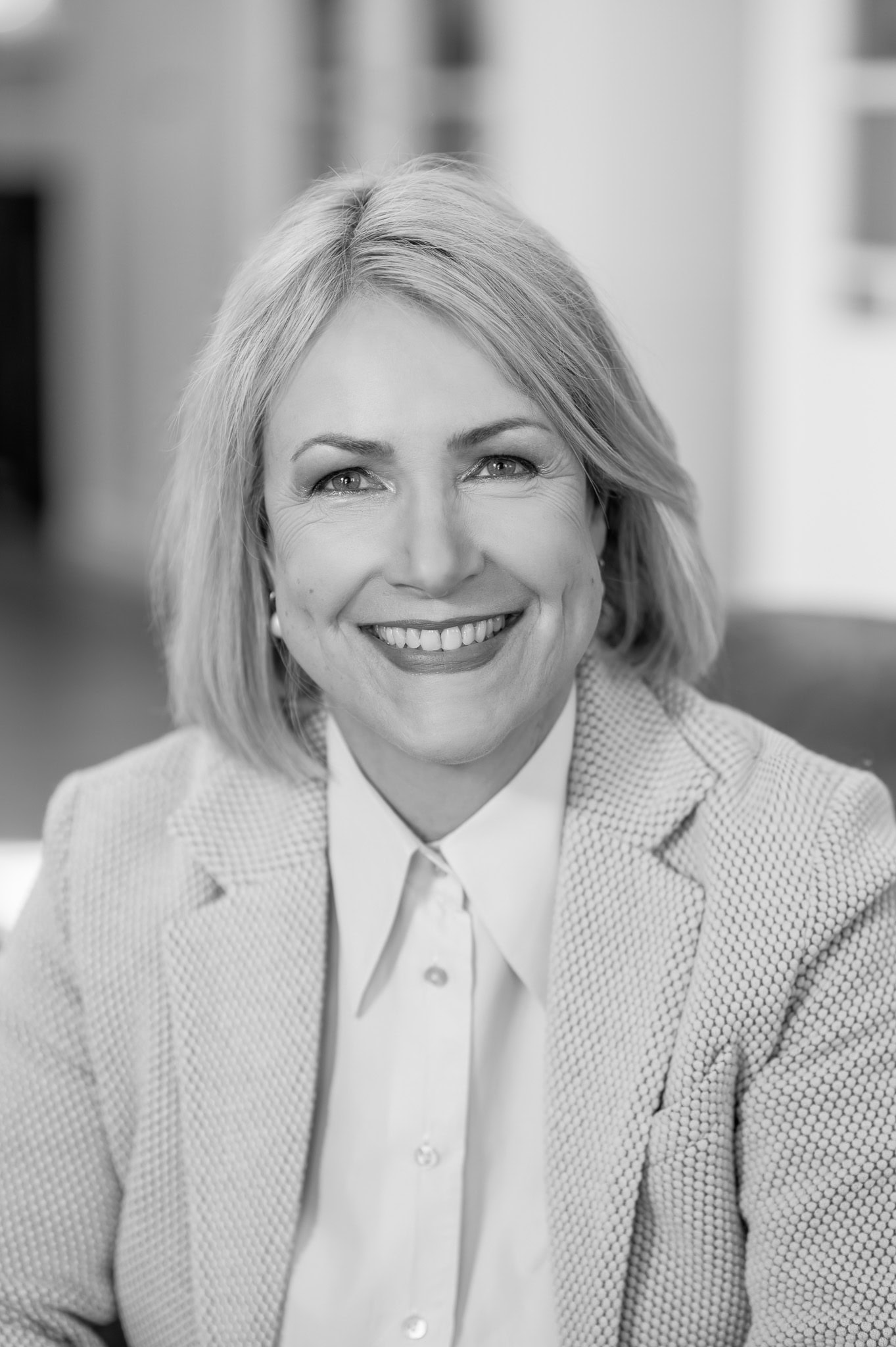 Das Bild zeigt eine freundliche selbstbewusste Geschäftsfrau in einem professionellen Umfeld geeignet für Business und Personal Branding um Kompetenz und Vertrauen zu vermitteln